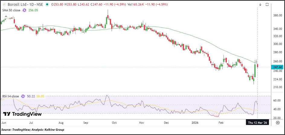 Technical View: Borosil Limited (NSE: BOROSIL) Below 50-Day SMA; Further Weakness May Persist