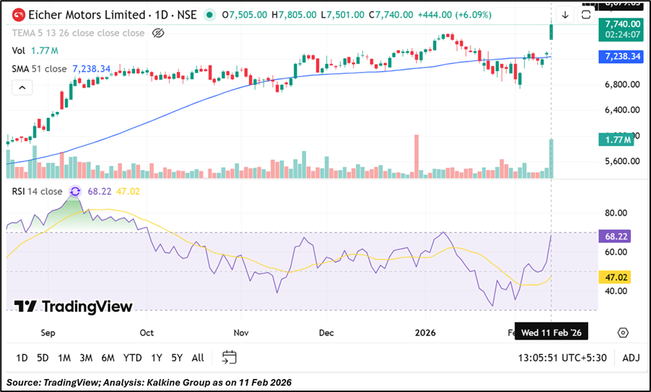 Technically, the stock remains in a firm uptrend with improving momentum indicators. With strong fundamentals and positive price structure aligning, Eicher appears well-positioned to sustain its growth trajectory ahead.