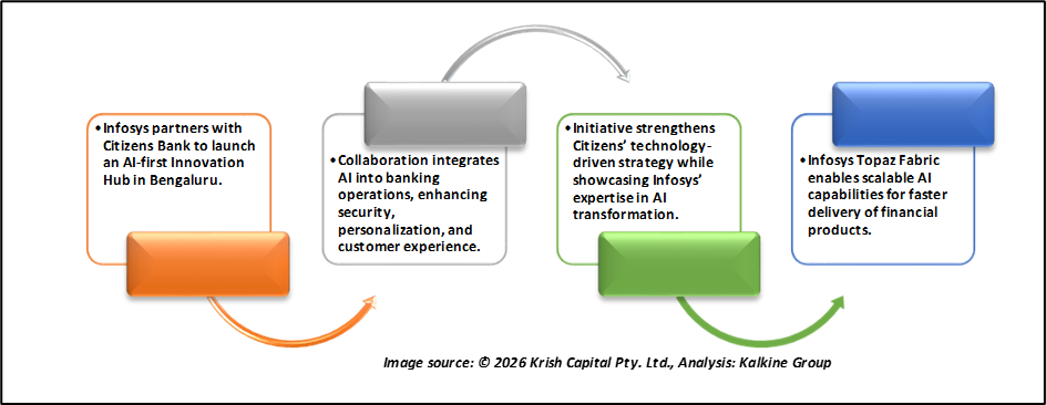 On February 3, 2026, Infosys announced its collaboration with Citizens Bank to support the launch of an AI-first Innovation Hub in Bengaluru. The hub is designed to accelerate AI-driven transformation across banking operations, product development, and customer experience.