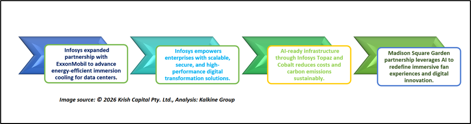 On February 2, 2026, Infosys renewed and expanded its partnership with the Madison Square Garden (MSG) Family of Companies, including the New York Knicks, New York Rangers, MSG Entertainment, and Sphere Entertainment.