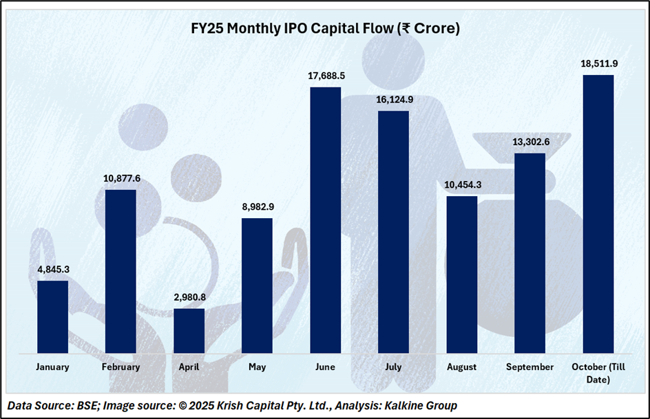 India’s primary markets remain abuzz with heightened IPO activity, underscoring the depth of investor interest across both mainboard and SME platforms. FY25 has already emerged as a vibrant year for capital mobilization, with monthly fundraising swinging between ₹2,981 crore and ₹17,688 crore, reflecting both the breadth and diversity of issues.
