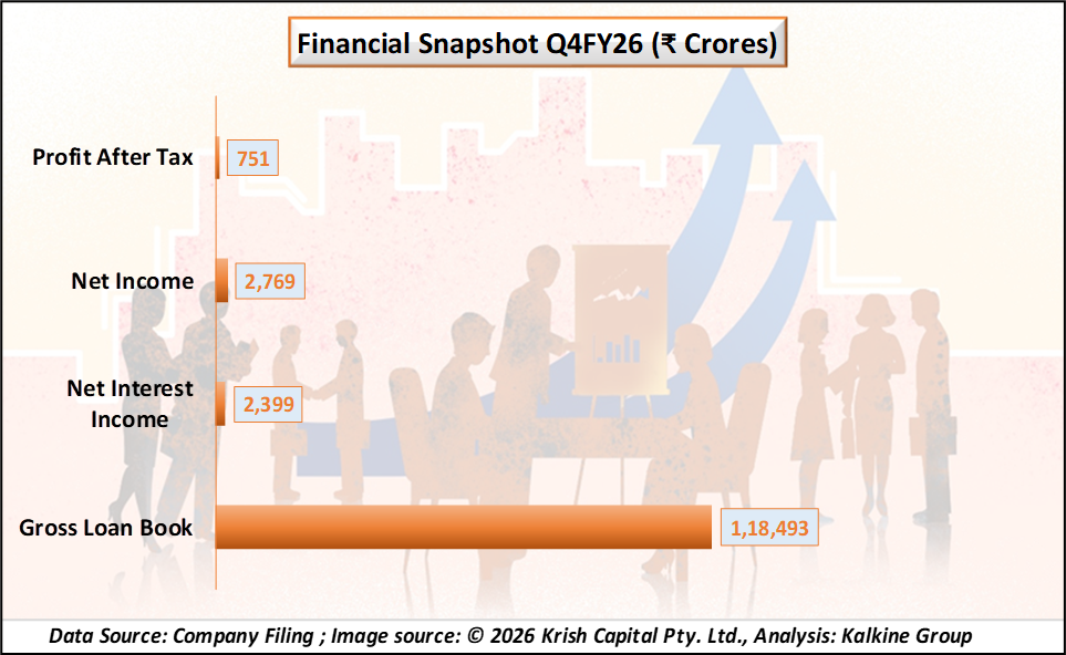 In Q4 FY2026, HDB Financial Services reported strong financial performance. The company recorded a Profit After Tax (PAT) of ₹751 crore, showing significant year-on-year growth. Net Interest Income (NII) stood at ₹2,399 crore, reflecting a 21.6% increase YoY.