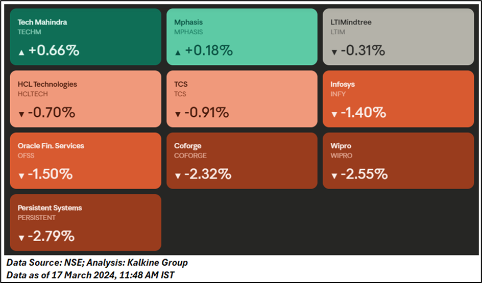 Heavyweights such as Infosys, TCS, and Wipro led the decline, dominating the list of top losers on the Nifty 50. The synchronized fall across frontline IT names signals a structural shift in sentiment toward the sector.