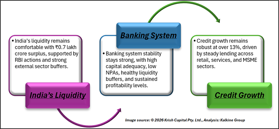 Comfortable liquidity, strong foreign exchange reserves, and a resilient, well-capitalised banking system with healthy credit growth further strengthen financial stability, keeping the overall outlook for FY26 and FY27 positive and well balanced.