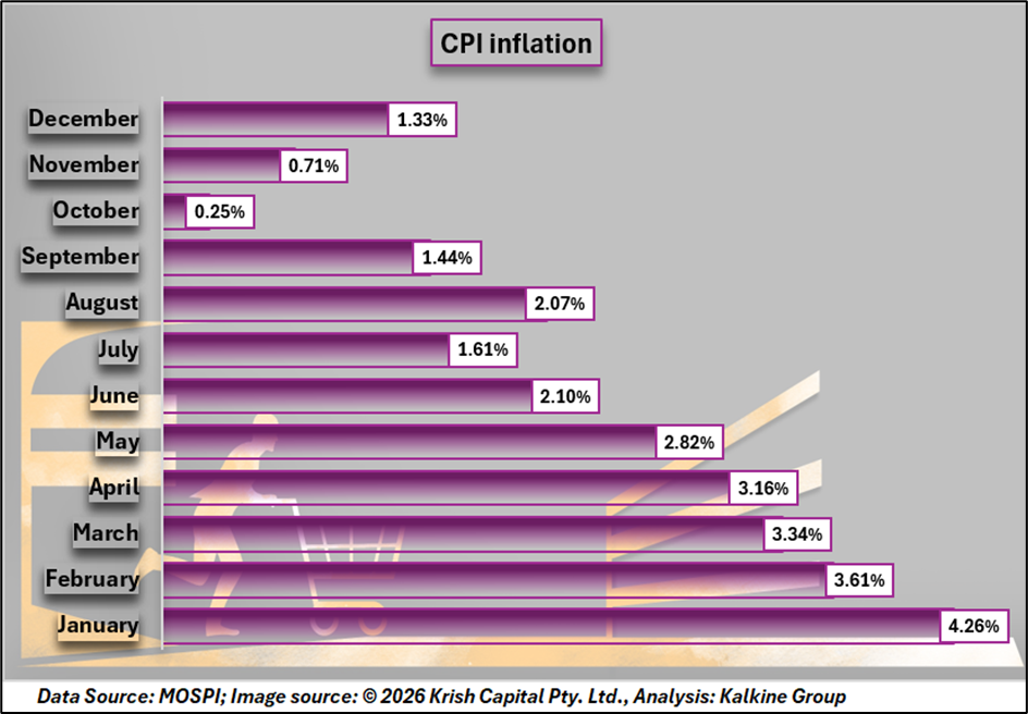 The RBI now projects CPI inflation at 2.1% for FY26, with Q4 inflation estimated at 3.2%. For FY27, inflation in Q1 and Q2 is projected at 4.0% and 4.2%, respectively. The upward revision reflects higher precious metal prices, while underlying inflation pressures remain muted.