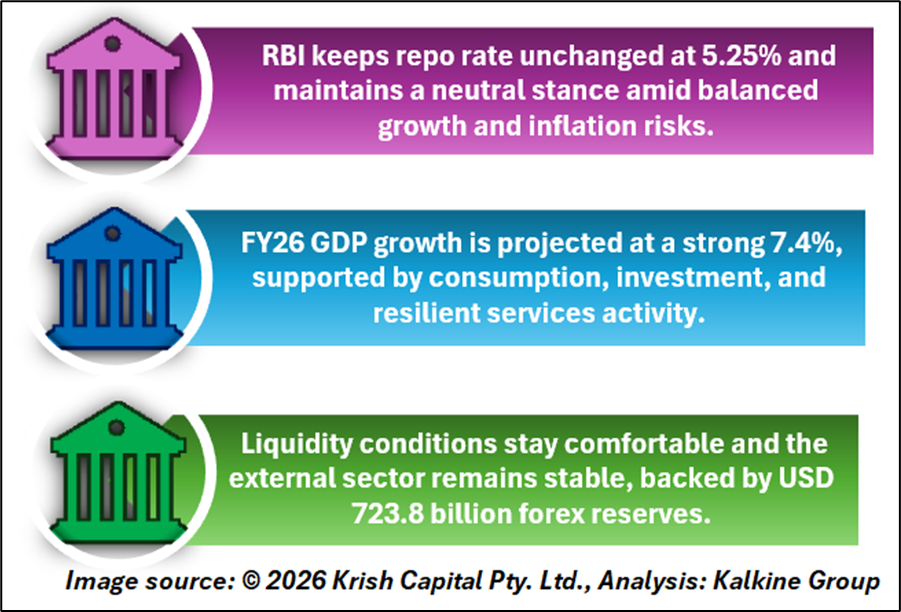The RBI’s decision to maintain the policy rate and a neutral stance reflects confidence in India’s strong macroeconomic fundamentals despite global geopolitical and trade-related uncertainties.