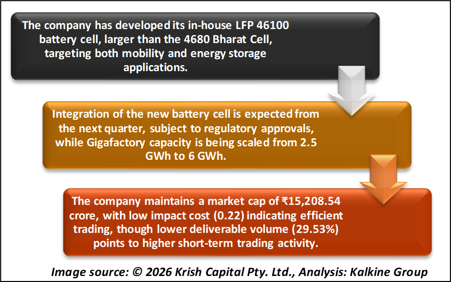 According to the company, the new cell format is larger than the existing 4680 Bharat Cell and is expected to be used across mobility and energy storage applications. The company stated that integration into its products is expected from the next quarter, subject to regulatory approvals.