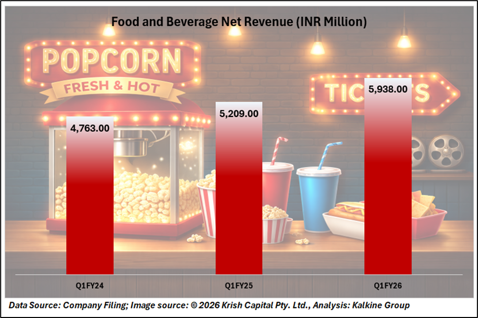 PVR INOX Ltd (NSE:PVRINOX) reported food and beverage net revenue of INR 5,938 million during Q3 FY26, compared with INR 5,209 million recorded in Q3 FY25. Initiatives such as weekday promotions, expansion of in-house food brands, and development of cinema-linked retail formats were highlighted as contributing factors to higher spending per customer.