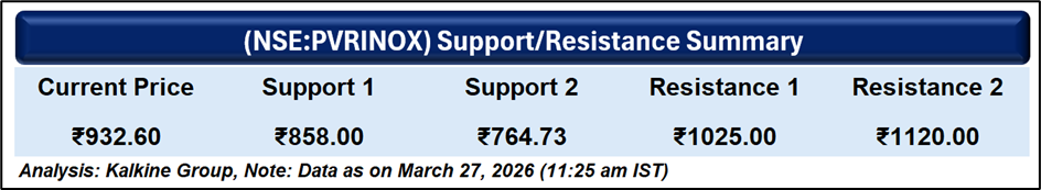 PVR INOX’s outlook toward FY26 closure appears supported by improving box office traction, steady financial recovery, and ongoing screen expansion across emerging markets. Strength in food, advertising, and content pipeline visibility may sustain operational momentum, although technical indicators suggest cautious sentiment until stronger buying support and price stability emerge.