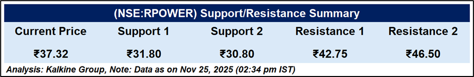 Reliance Power’s formation of a Board of Management, steady financial recovery, and strategic push into renewables support long-term stability. While operational performance remains strong, the stock’s technical setup signals caution near key support. Sustained strength above ₹34 is crucial for sentiment to improve and unlock meaningful upside prospects.