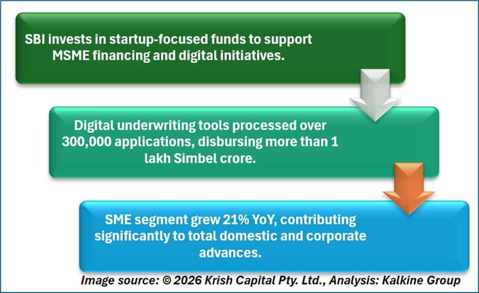 State Bank of India has outlined a strategic plan to invest in startup-focused funds and financial market infrastructure to support Micro, Small, and Medium Enterprises (MSMEs). The bank’s approach includes direct equity participation in startups and related funds, positioning emerging technology companies as contributors to expanding credit and services for MSMEs.