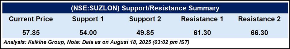 With India targeting 122 GW of wind capacity by 2031-32 and 500 GW of non-fossil fuel energy by 2030, Suzlon is positioned to benefit from sectoral growth. Its diversified order pipeline, domestic manufacturing base, and continued emphasis on operational efficiency provide scope for steady performance in the coming quarters.