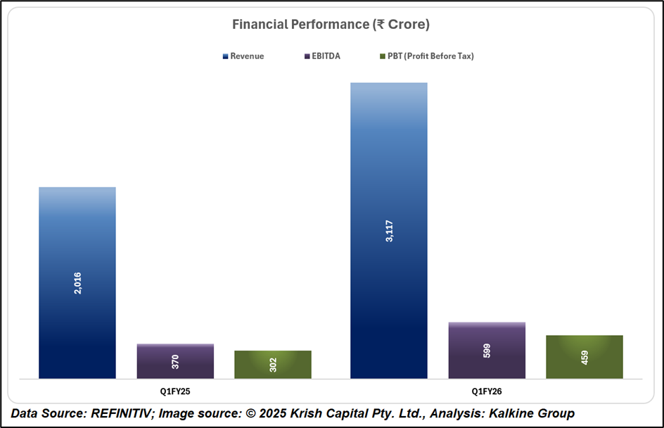 Suzlon achieved its highest-ever first-quarter deliveries of 444 MW, marking a 62% year-on-year (YoY) increase. This translated into consolidated revenue of ₹3,117 crore, up 55% YoY from ₹2,016 crore in Q1FY25. The strong momentum was supported by sustained demand from commercial and industrial (C&I) customers, hybrid renewable energy projects, and favorable policy push for domestic wind manufacturing.