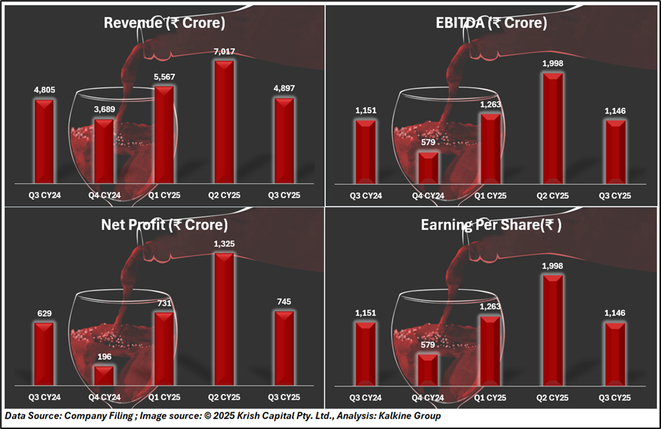 For the quarter ended September 2025, VBL reported a net profit of ₹745 crore, up 18.5% year-on-year, driven by lower finance costs and strong international performance.