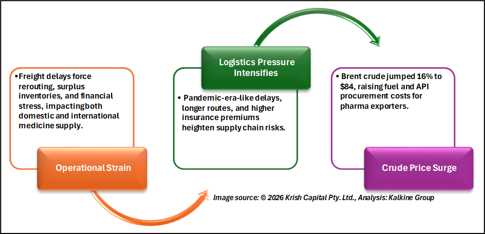 Rising freight costs and delays are impacting the timely delivery of medicines, forcing companies to reroute shipments or maintain surplus inventories, which strains both finances and storage capacities. Bulk drug and intermediates exporters are particularly affected, as the API manufacturing sector relies heavily on petroleum-based inputs, making them vulnerable to crude price spikes.