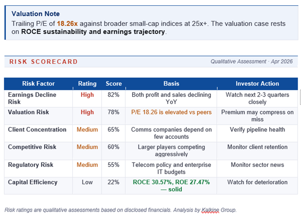 - Client-concentration risk: Communications and IT services companies at this size often depend on a small number of large accounts.