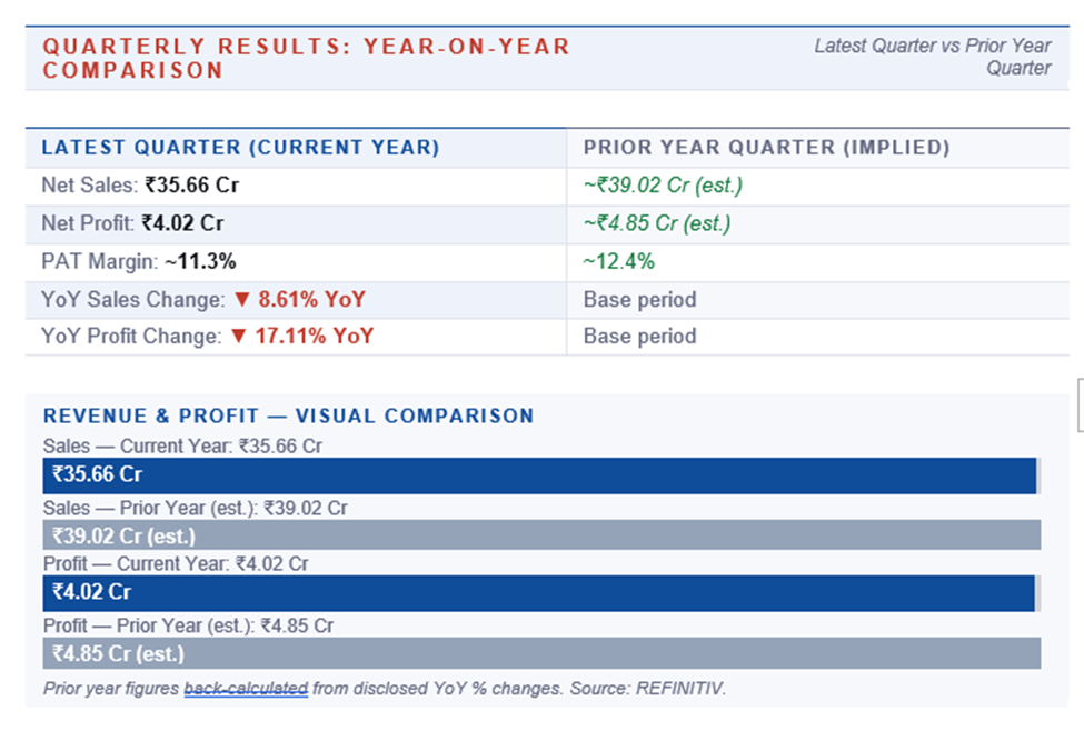 Enser's latest quarter reflects a period of operational softness. Quarterly net profit declined 17.11% YoY to ₹4.02 crore, while quarterly sales fell 8.61% to ₹35.66 crore. Despite the decline, trailing return ratios remain strong — ROCE of 30.57% and ROE of 27.47% — which suggests the structural business model is healthy even if recent quarters have slowed.