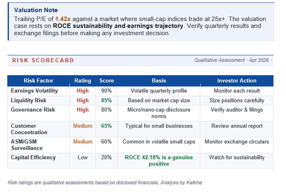 - Governance risk: Investors must independently verify promoter holding, pledge status, related-party transactions, and auditor continuity.