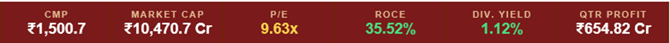 At a CMP of ₹1,500.7 and trailing P/E of 9.63x, BBTC trades at a very significant discount to the Indian FMCG peer group, which typically commands P/E multiples of 40–65x on data. Even applying a standard holding-company discount of 40–50% to the peer multiple implies a fair P/E for BBTC closer to 20–25x, suggesting the stock is optically cheap on an earnings basis. The ROCE of 35.52% corroborates the quality of the underlying earnings stream.