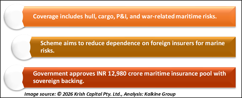 The approval of India’s maritime insurance pool marks a policy step toward reducing reliance on foreign insurers. With INR 12,980 crore sovereign support, the scheme covers key maritime risks and operates for up to 15 years.
