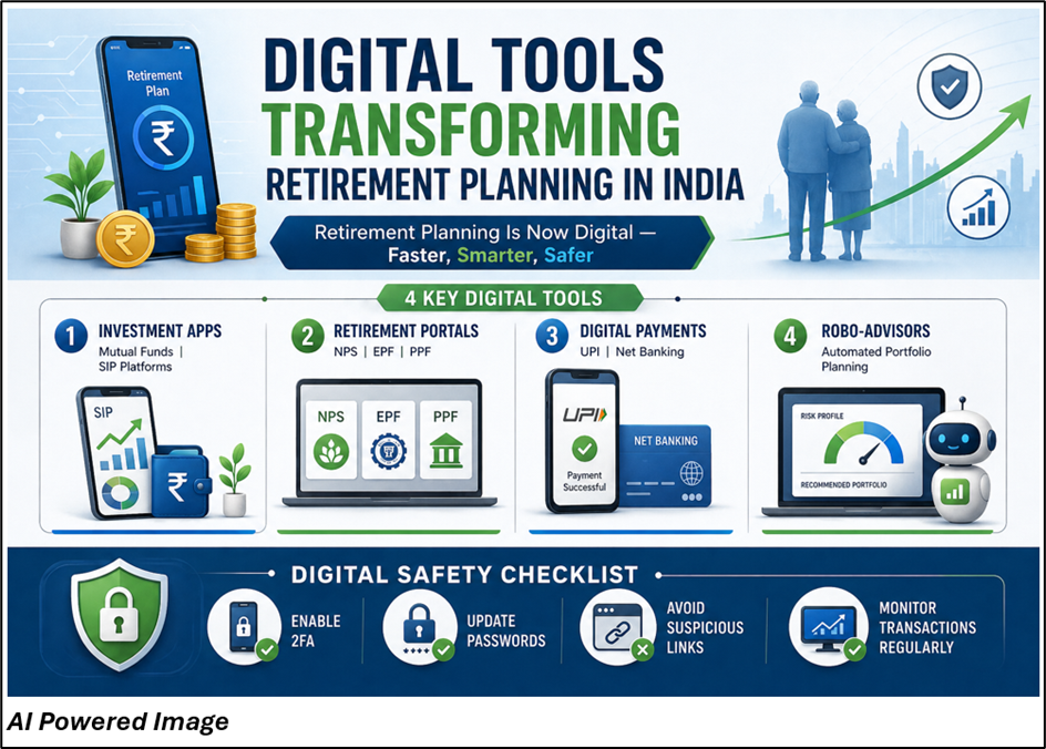 Digital finance is transforming retirement planning in India by improving accessibility, automation, and financial transparency. From managing SIPs to tracking pension accounts, fintech solutions enable investors to take greater control of their retirement journey. However, cybersecurity awareness and disciplined financial habits remain essential. By combining digital convenience with prudent risk management, Indian retirees can build secure and sustainable retirement portfolios.